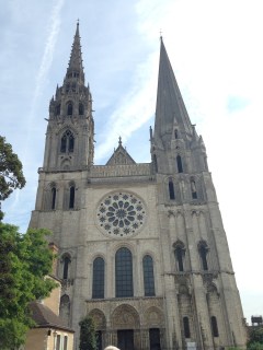 Our class trip began at 9 a.m. with a bus ride to Chartres, a town 50 km south of Paris. It was supposed to be a hot day in Paris, so we were glad to have slightly less heat there. Teo took us to Chartres to show us the cathedral, which he said was built as a monument to Mary. Since it’s the only cathedral built within one generation (25 years), he said it’s a perfect example of gothic architecture because new adornments were not added as years passed. It was a lot simpler than Notre Dame but still had the rose windows to let in light.